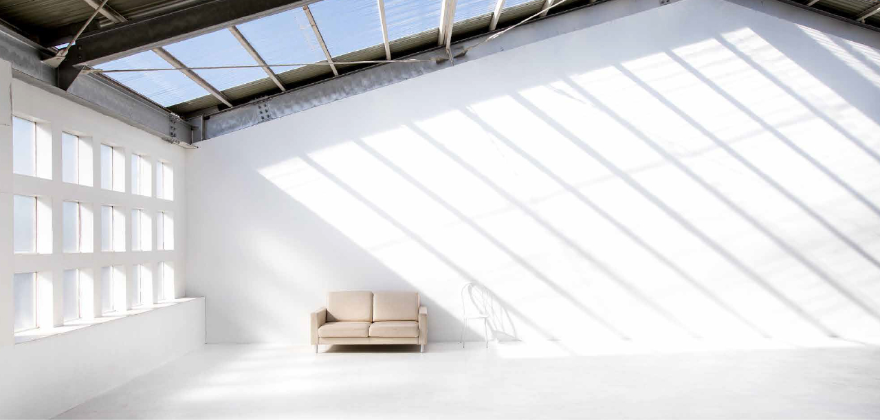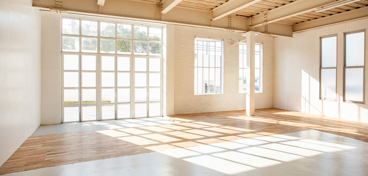 スタジオグランボアは広々とした空間に自然光が入る、